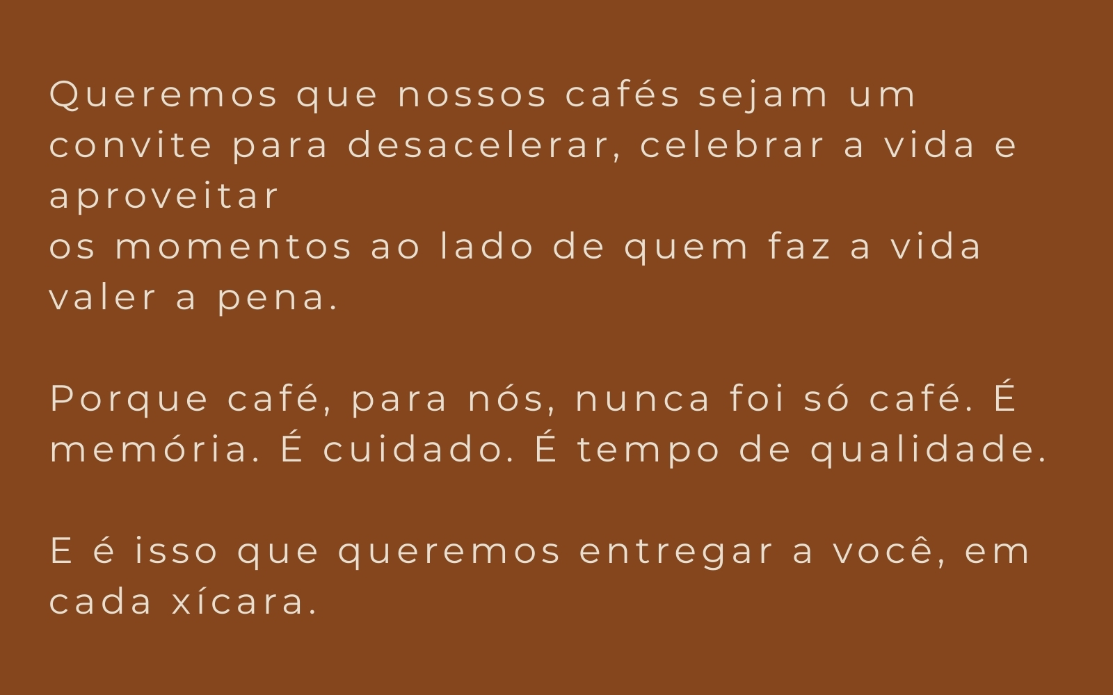 A marca surge pelas mãos de Felipe e sua esposa Gislene, inicialmente como uma homenagem, mas rapidamente se transforma em um compromisso: levar até você um café especial de verdade, produzido com propósito, origem transparente e qualidade que se sente na xícara.